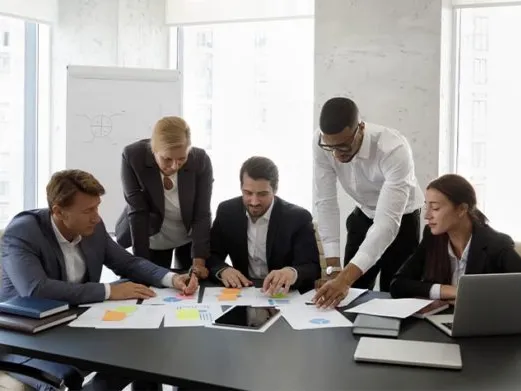 Beim Modell “Scrum” treffen sich Mitarbeitende eines Projekts jeden Tag, um sich über den Verlauf von Projekten und über anstehende Aufgaben auszutauschen.