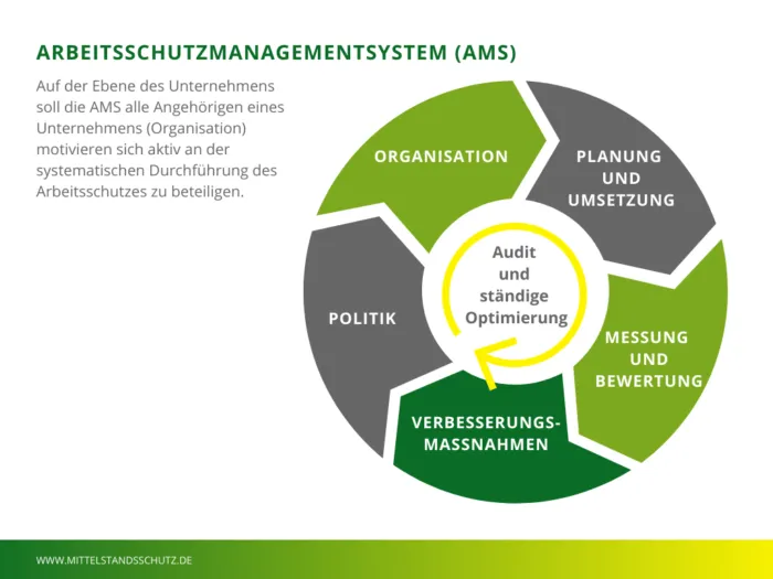 Alle Unternehmen müssen die rechtlichen Vorschriften zum Arbeitsschutz umsetzen und einhalten. Sie dienen dazu, betriebliche Arbeitsunfälle sowie arbeitsbedingte Erkrankungen zu vermeiden und die Gesundheit der Beschäftigten am Arbeitsplatz generell zu schützen. Verantwortlich für den Arbeits- und Gesundheitsschutz deiner Mitarbeiter bist du als Arbeitgeber. Arbeitsschutzmanagementsysteme (AMS) helfen dir dabei, deiner Pflicht nachzukommen und den Arbeitsschutz systematisch in dein Unternehmen zu integrieren.