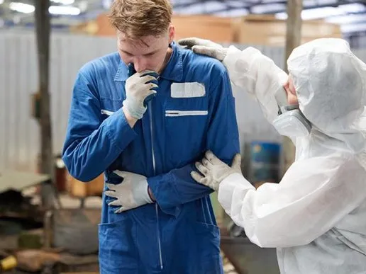 - Stäube, die die Atemwege oder Lunge belasten, wie zum Beispiel: Asbest, Hartmetallstaub, Quarzstaub