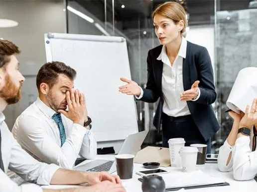 Zu Konflikten, die die psychische Belastung deiner Mitarbeitenden erhöhen, zählen Missverständnisse innerhalb des Teams, Machtspiele und Mobbing. Dazu kann auch eine schlechte Gesprächskultur oder ein mangelndes Vertrauen gegenüber Kolleg*innen beitragen. Mitarbeitende, die dies erleben, isolieren sich oftmals sozial, haben Angst vor dem Gang in die Büroräume oder zeigen depressive Symptome auf.
