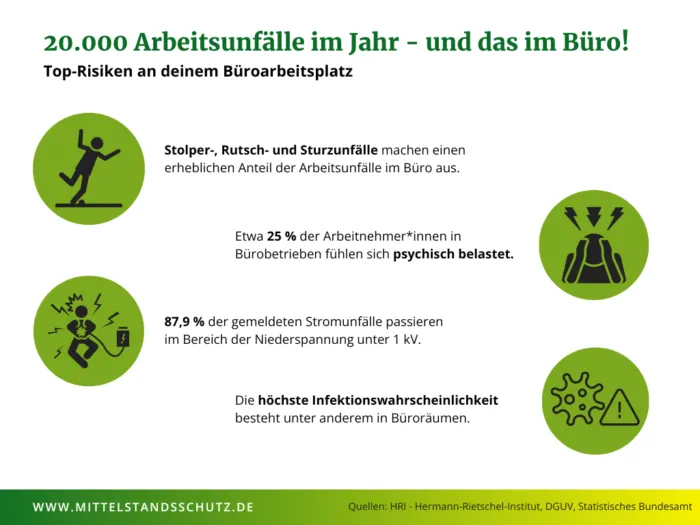 Was sind die häufigsten physischen Gefahren am Büroarbeitsplatz?