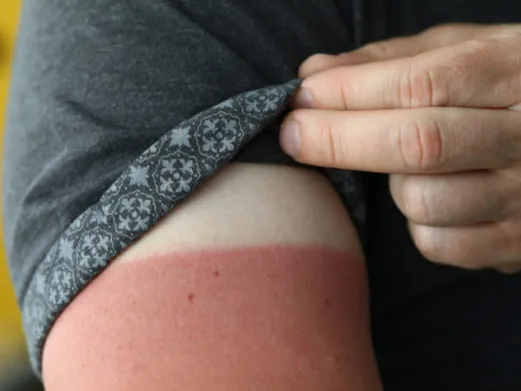 Die Kräfte der Sonnenstrahlen darf man nicht unterschätzen. Auch an vermeintlich sicheren Orten ist man mehr der Sonne ausgesetzt als gedacht. Angefangen beim beliebten Sonnenschirm. Selbst im Schatten erreicht den Körper noch eine Menge UV-Strahlung, die einen starken Sonnenbrand hervorrufen kann. Die Umgebung reflektiert dabei die Strahlung in den Schatten hinein. Expert*innen nennen dieses Vorkommen das Rückstrahlvermögen. Beim Arbeiten im Freien reichen also nicht nur schattenspendende Maßnahmen.